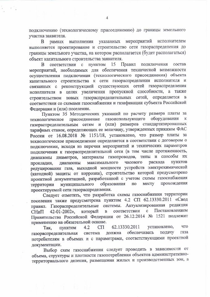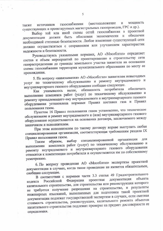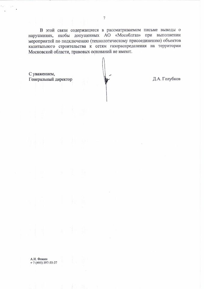 В этой связи, содержащиеся в рассматриваемом письме выводы о нарушениях, якобы допущенных АО «Мособлгаз» при выполнении мероприятий по подключению (технологическому присоединению) объектов капитального строительства к сетям газораспределения на территории Московской области; правовых оснований не имеют.